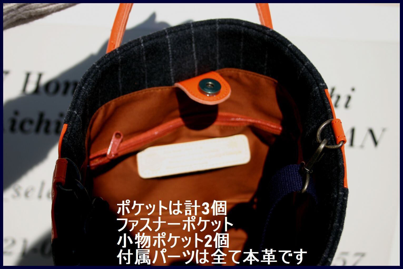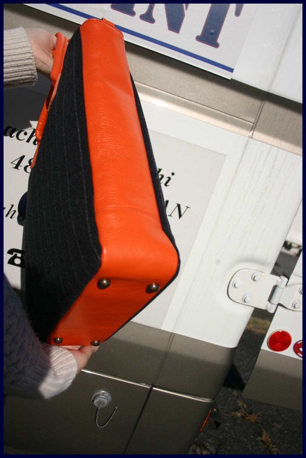 革の鮮やかなオレンジがチャコールグレーに映えます