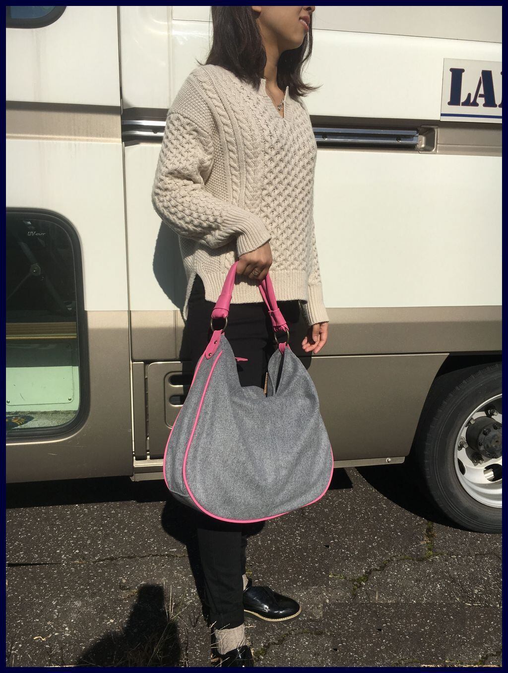 サキソニーはTOP 糸ライトグレー遣いのベーシックなカラーに アクセントでピンクを配した